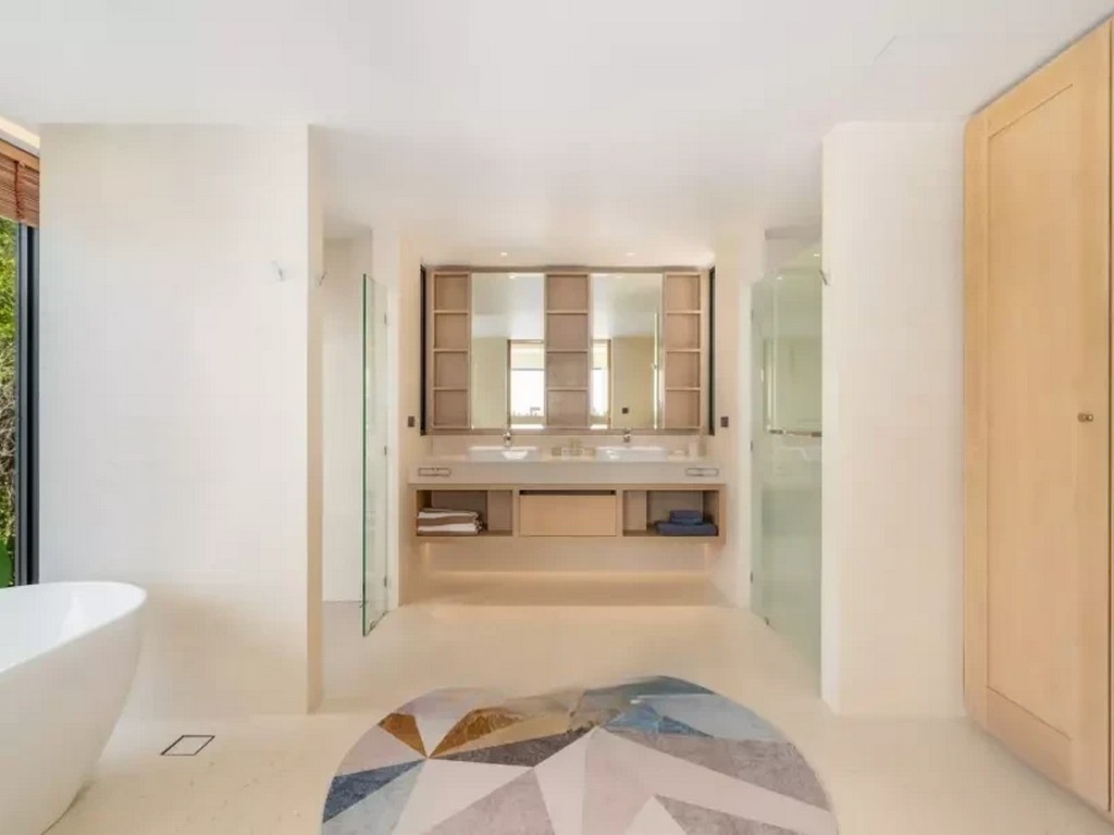 The promise of uncompromising sanctuary extends to the villa’s six magnificent bedroom suites. Each offers a haven of privacy and supreme comfort, centred around a king-size bed swathed in premium hotel-grade linens. Step out onto your private sea-view terrace to greet the morning sun or savour the fading colours of dusk. Within, sumptuous ensuite bathrooms, complete with invigorating rainfall showers, deliver a spa-like experience of luxury. Every detail, from custom-commissioned artwork gracing the walls to meticulously curated furnishings, reflects an unwavering commitment to refinement, meeting and exceeding the expectations of the world’s most discerning guests. This is privacy redefined, wrapped in elegance.